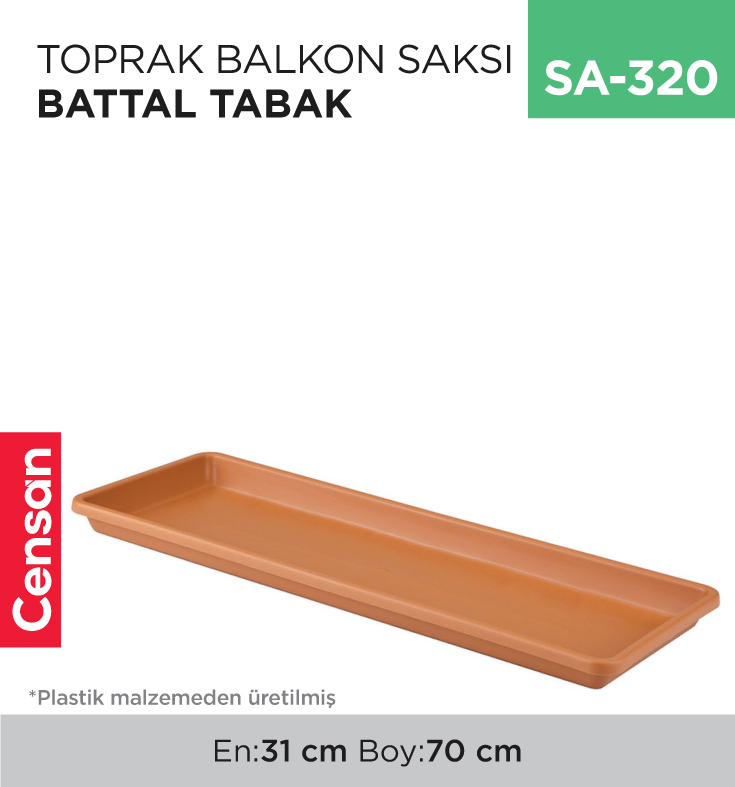 Kurumsal ve bireysel müşterilere yönelik ürün tedariği gerçekleştiren Censan Endüstriyel, geniş ürün portföyü ile hizmet vermektedir. BALKON SAKSILARI kategorisi kapsamında yer alan BALKON TOPRAK SAKSI BATTAL TABAK (Stok Kodu: SA-320), farklı kullanım senaryolarına hitap etmektedir.