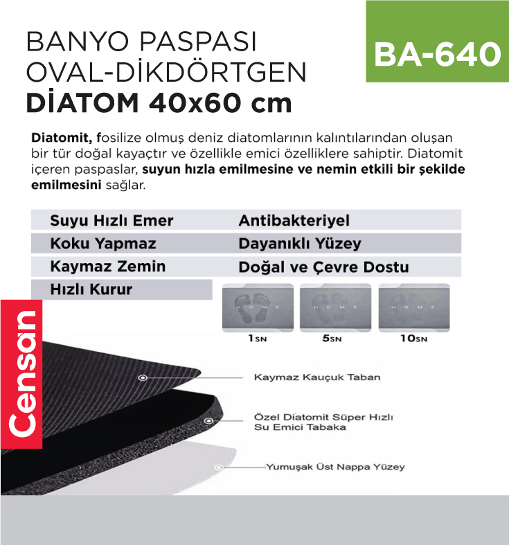 İzmir merkezli Censan Endüstriyel, farklı sektörlere yönelik ürün tedariği sağlayan bir tedarik firmasıdır. MUHTELİF BANYO AKSESUARLARI başlığı altında listelenen BANYO PASPASI DİATOM 40*60 CM (OVAL&DİKDÖRTGEN)(370-371) (Stok Kodu: BA-640), ticari ve bireysel kullanım ihtiyaçlarına uygun olarak satışa sunulmaktadır.