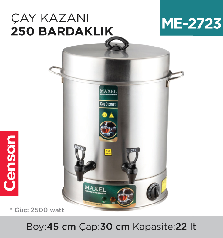 Kurumsal ve bireysel müşterilere yönelik ürün tedariği gerçekleştiren Censan Endüstriyel, geniş ürün portföyü ile hizmet vermektedir. ÇAYDANLIK & CEZVE & ISITICI, MUTFAK EŞYALARI kategorisi kapsamında yer alan ÇAY KAZANI 250 BARDAKLIK (Stok Kodu: ME-2723), farklı kullanım senaryolarına hitap etmektedir.