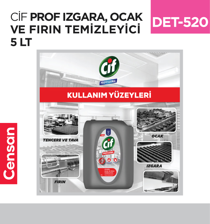 Censan Endüstriyel, işletmelerin ve bireysel kullanıcıların ihtiyaç duyduğu ürün gruplarında tedarik çözümleri sunmaktadır. SIVI KREM&OVMA TOZLARI sınıflandırması altında sunulan CİF PROF IZGARA, OCAK VE FIRIN TEMİZLEYİCİ 5 L (Stok Kodu: DET-520), genel kullanım beklentileri gözetilerek stoklarımızda yer almaktadır.