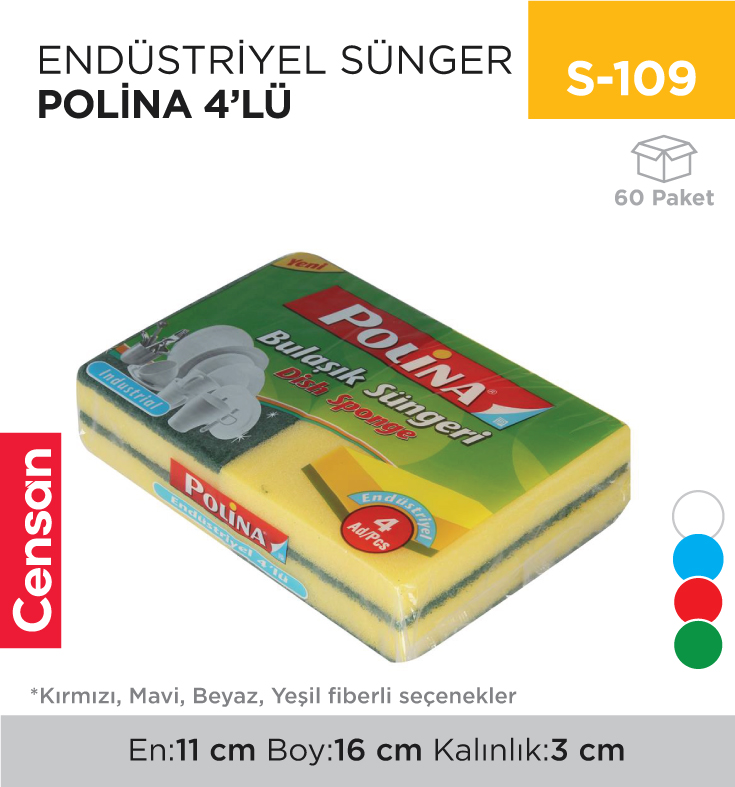 ENDÜSTRİYEL SÜNGER POLİNA 4LÜ (2233)
