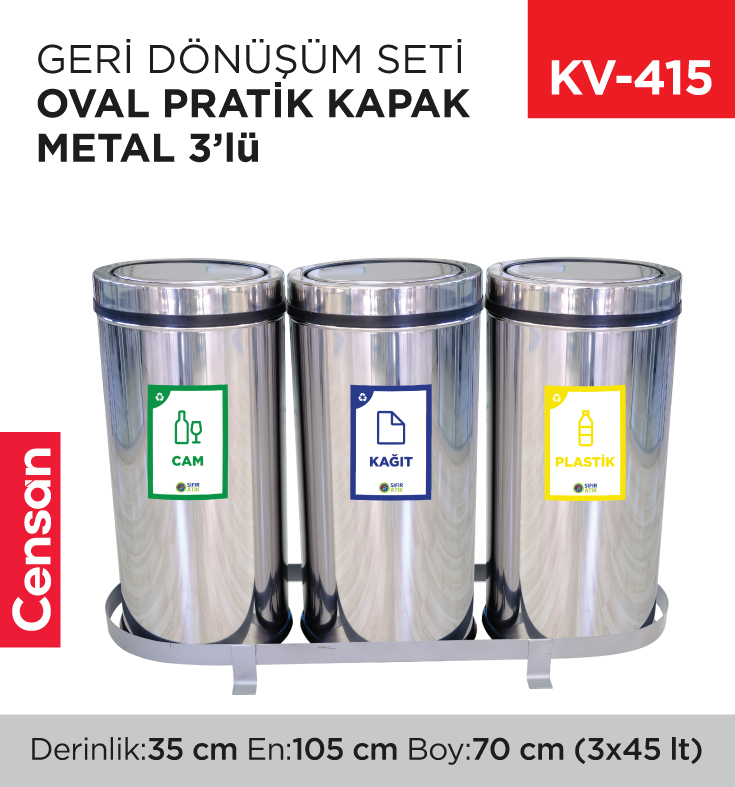 GERİ DÖNÜŞÜM SETİ OVAL PRATİK KAPAK METAL 3LÜ