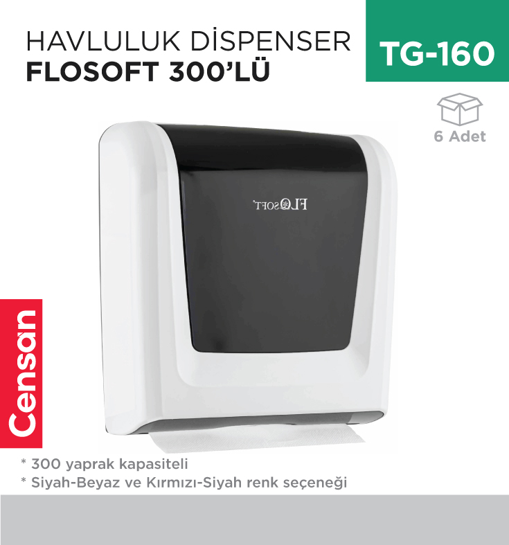 Kurumsal ve bireysel müşterilere yönelik ürün tedariği gerçekleştiren Censan Endüstriyel, geniş ürün portföyü ile hizmet vermektedir. KAĞIT HAVLU DİSPENSERLERİ kategorisi kapsamında yer alan HAVLULUK DİSPENSER FLOSOFT 300LÜ (F114S - F114B) (Stok Kodu: TG-160), farklı kullanım senaryolarına hitap etmektedir.