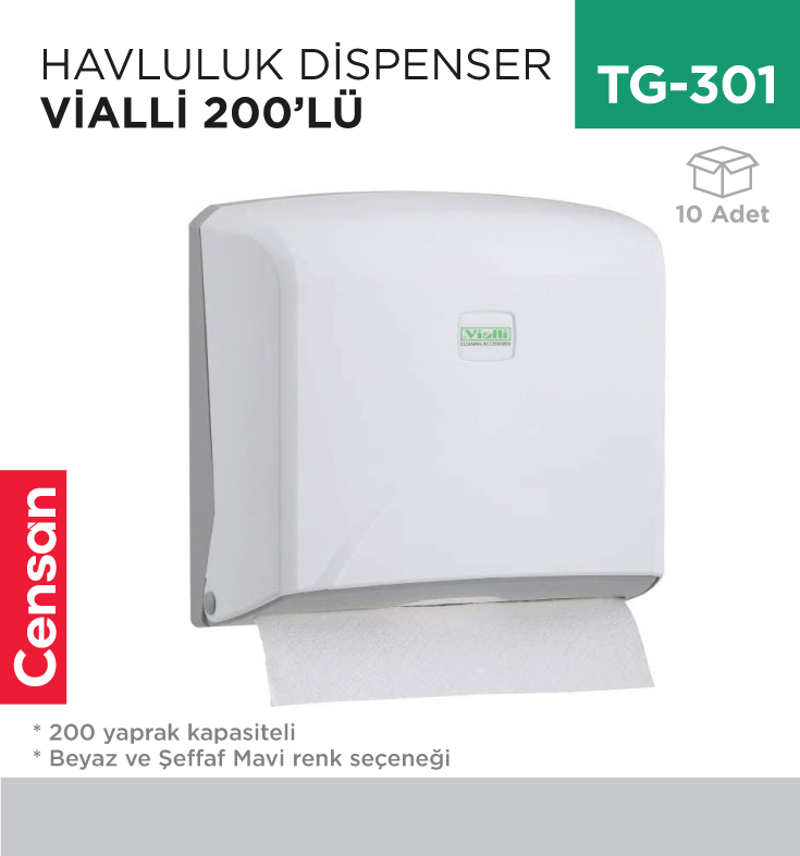 Kurumsal ve bireysel müşterilere yönelik ürün tedariği gerçekleştiren Censan Endüstriyel, geniş ürün portföyü ile hizmet vermektedir. KAĞIT HAVLU DİSPENSERLERİ kategorisi kapsamında yer alan HAVLULUK DİSPENSER VİALLİ 200LÜ (K2-K2T) (Stok Kodu: TG-301), farklı kullanım senaryolarına hitap etmektedir.