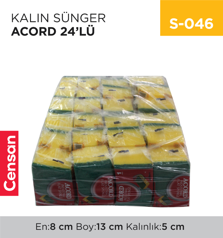 Censan Endüstriyel, işletmelerin ve bireysel kullanıcıların ihtiyaç duyduğu ürün gruplarında tedarik çözümleri sunmaktadır. BULAŞIK SÜNGERLERİ, SÜNGERLER & BULAŞIK TELLERİ sınıflandırması altında sunulan KALIN SÜNGER ACORD 24LÜ (412) (Stok Kodu: S-046), genel kullanım beklentileri gözetilerek stoklarımızda yer almaktadır.