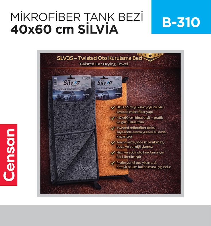 Kurumsal ve bireysel müşterilere yönelik ürün tedariği gerçekleştiren Censan Endüstriyel, geniş ürün portföyü ile hizmet vermektedir. MİKROFİBER OTO GRUBU kategorisi kapsamında yer alan MİKROFİBER TANK BEZİ 40*60 SİLVİA (SLV35) (Stok Kodu: B-310), farklı kullanım senaryolarına hitap etmektedir.