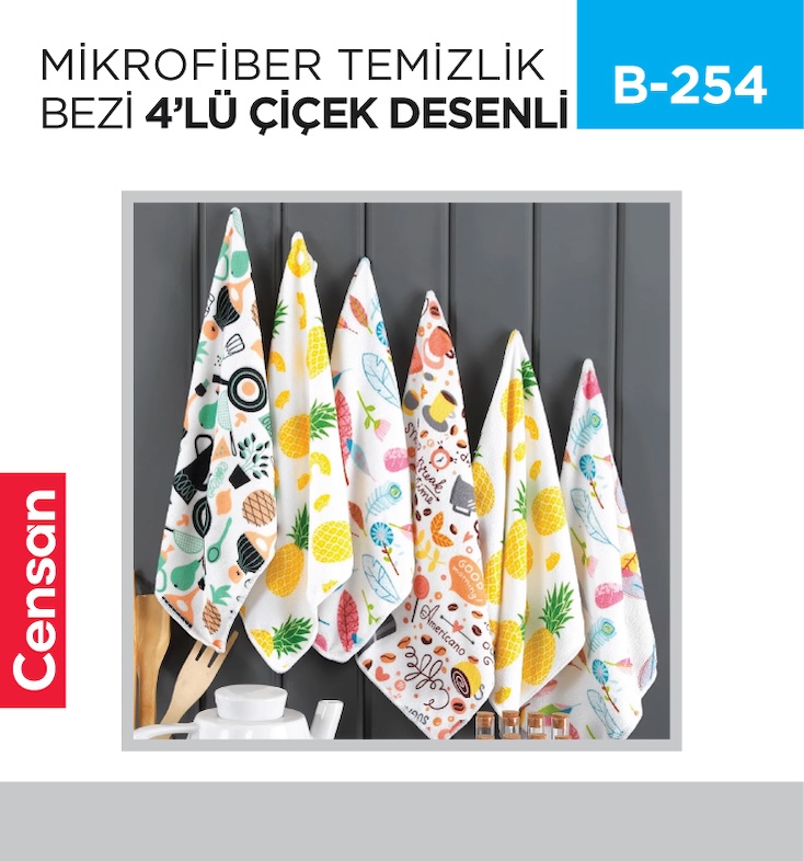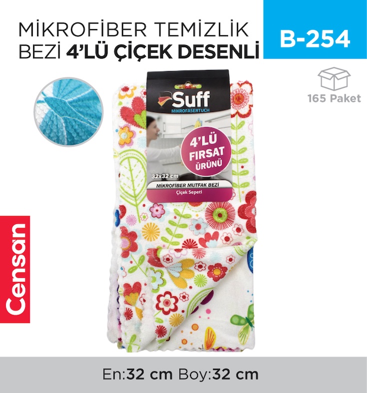 MİKROFİBER TEMİZLİK BEZİ 4LÜ ÇİÇEK DESENLİ (A01-3232-250) | Toptan & Perakende Satış
