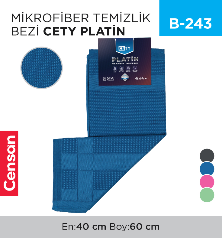 Kurumsal ve bireysel müşterilere yönelik ürün tedariği gerçekleştiren Censan Endüstriyel, geniş ürün portföyü ile hizmet vermektedir. MİKROFİBER TEMİZLİK BEZLERİ, TEMİZLİK BEZLERİ kategorisi kapsamında yer alan MİKROFİBER TEMİZLİK BEZİ PLATİN 40*60 CM (Stok Kodu: B-243), farklı kullanım senaryolarına hitap etmektedir.