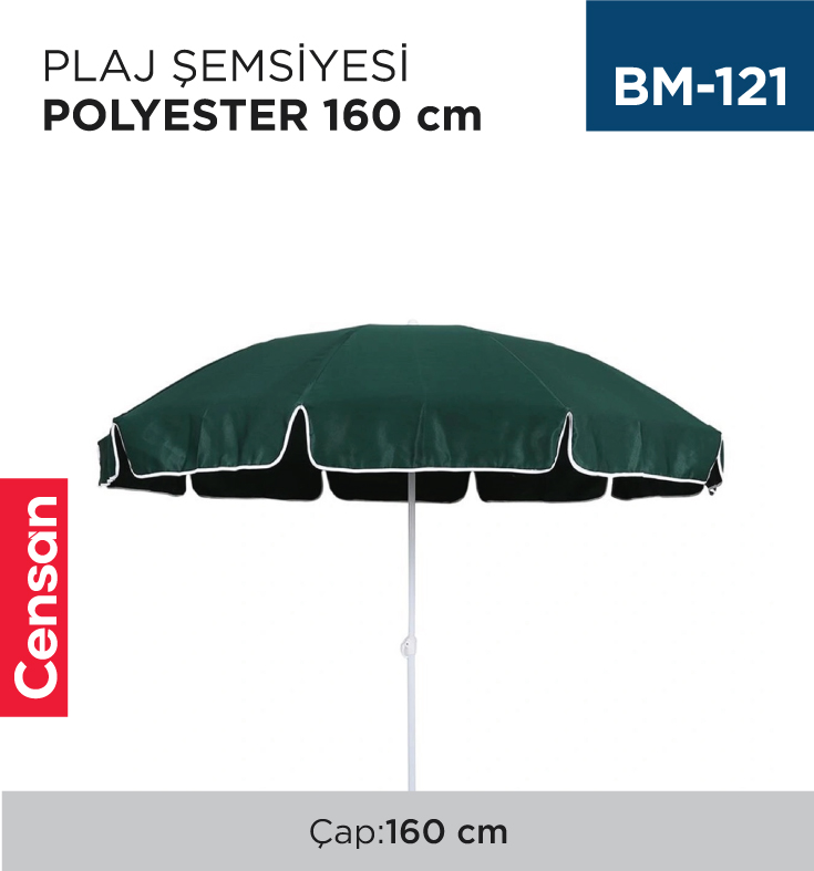 Kurumsal ve bireysel müşterilere yönelik ürün tedariği gerçekleştiren Censan Endüstriyel, geniş ürün portföyü ile hizmet vermektedir. ŞEZLONGLAR & PLAJ MALZEMELERİ kategorisi kapsamında yer alan PLAJ ŞEMSİYESİ POLYESTER ÇAP:160 CM (Stok Kodu: BM-121), farklı kullanım senaryolarına hitap etmektedir.