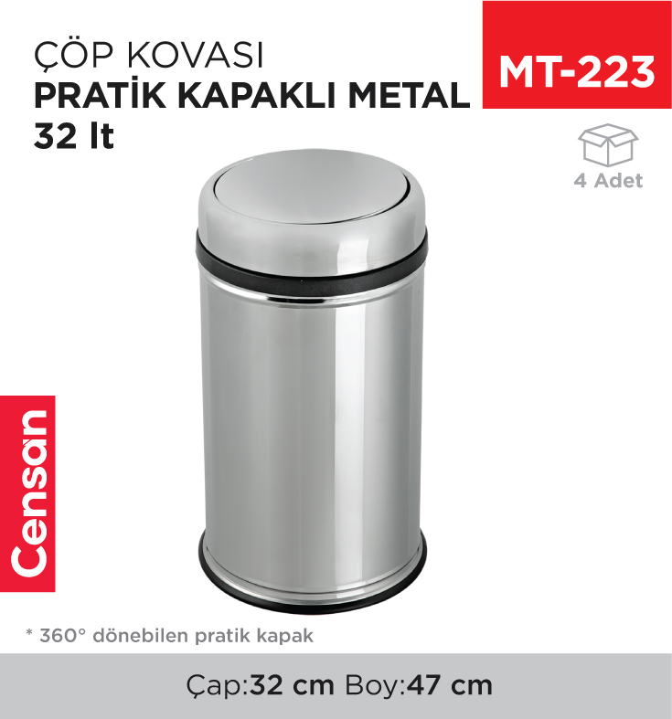 Kurumsal ve bireysel müşterilere yönelik ürün tedariği gerçekleştiren Censan Endüstriyel, geniş ürün portföyü ile hizmet vermektedir. KAPAKLI ÇÖP KOVALARI kategorisi kapsamında yer alan PRATİK KAPAKLI ÇÖP KOVASI METAL 32 LT (806) (Stok Kodu: MT-223), farklı kullanım senaryolarına hitap etmektedir.
