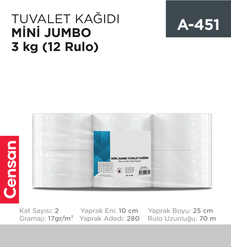 TUVALET KAĞIDI MİNİ JUMBO 12 Lİ 3 KG (TAMİ) (6400)