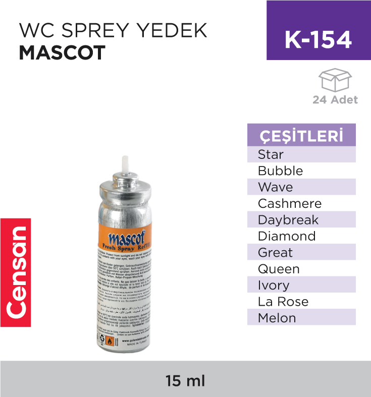 Censan Endüstriyel, işletmelerin ve bireysel kullanıcıların ihtiyaç duyduğu ürün gruplarında tedarik çözümleri sunmaktadır. KOKULAR & TEMİZLEYİCİLER, WC KOKULARI sınıflandırması altında sunulan WC SPREY YEDEK MASCOT (MSC0818) (Stok Kodu: K-154), genel kullanım beklentileri gözetilerek stoklarımızda yer almaktadır.